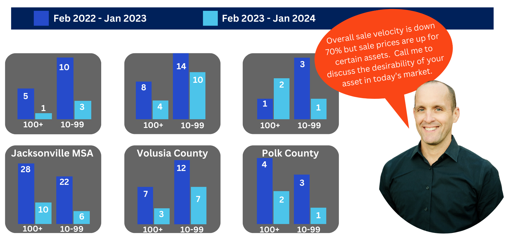 *Stats for Trailing 12 months ending 4th Quarter 2023 and combine Classes A, B, and C. Please note the smaller number of sales in Student and Affordable make assumptions in those categories less reliable.